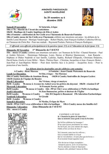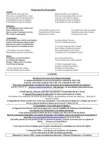 Article publié par response.text()) .then(text => { html = text showLoading = false; })" class="flex justify-center animate-grow-on-hover--small">Cathocambrai • Publié le Samedi 29 novembre 2025 - 15h22 • 17 visites 2549 annonces paroissiales du 29 nov au 6 decembre Télécharger 279.8 Ko Télécharger