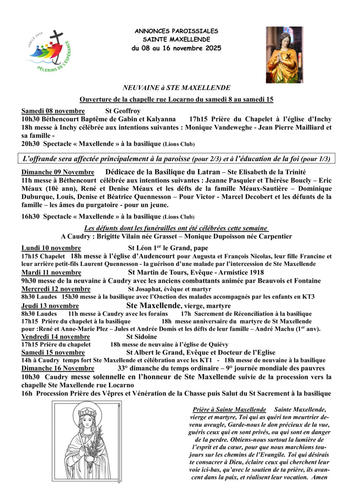 Article publié par response.text()) .then(text => { html = text showLoading = false; })" class="flex justify-center animate-grow-on-hover--small">Cathocambrai • Publié le Samedi 08 novembre 2025 - 15h39 • 6 visites 2546 annonces paroissiales du 08 au 16 novembre 20 Télécharger 258.8 Ko Télécharger