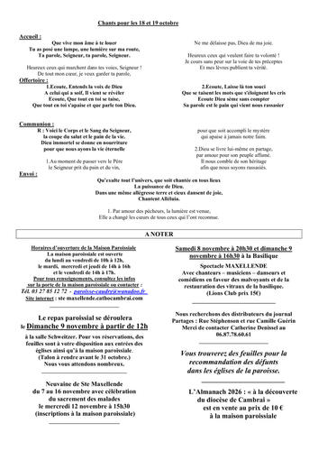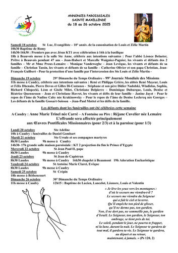 Article publié par response.text()) .then(text => { html = text showLoading = false; })" class="flex justify-center animate-grow-on-hover--small">Cathocambrai • Publié le Samedi 18 octobre 2025 - 16h52 • 7 visites 2543 annonces paroissiales du 18 au 26 octobre 202 Télécharger 242.8 Ko Télécharger